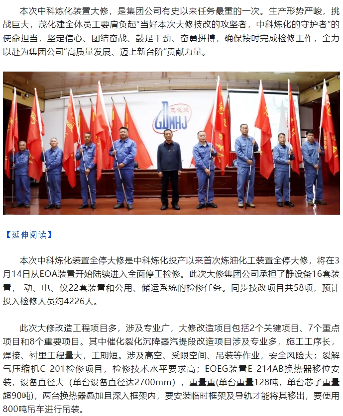 勠力同心擂響戰(zhàn)鼓 千軍萬馬出征大修——集團(tuán)公司2024年中科煉化裝置大修動(dòng)