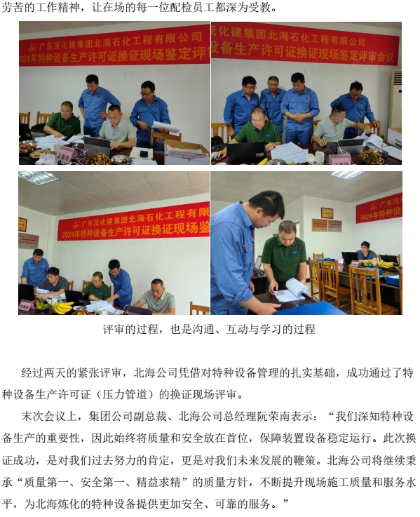 北海公司通過特種設備生產(chǎn)許可證(壓力管道)換證現(xiàn)場評審