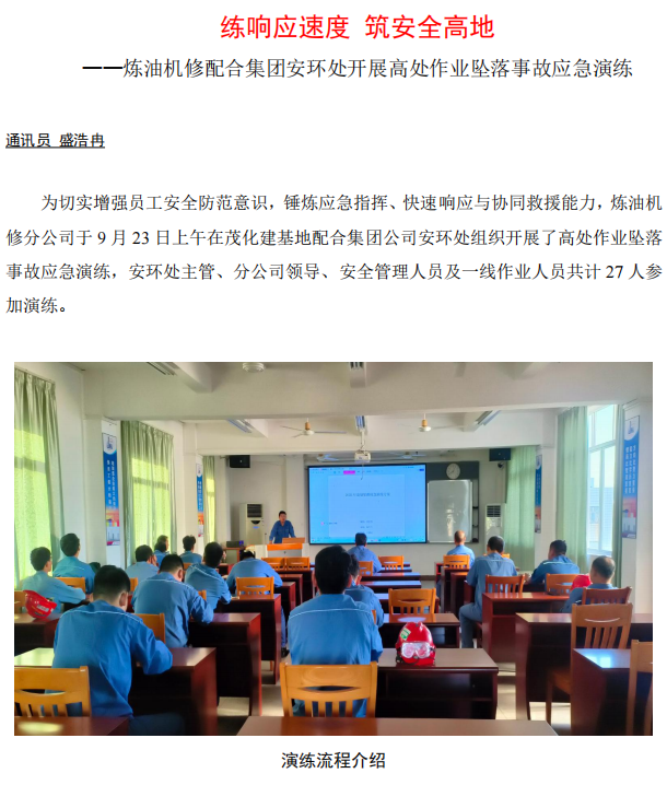 煉油機(jī)修配合集團(tuán)安環(huán)處開(kāi)展高處作業(yè)墜落事故應(yīng)急演練